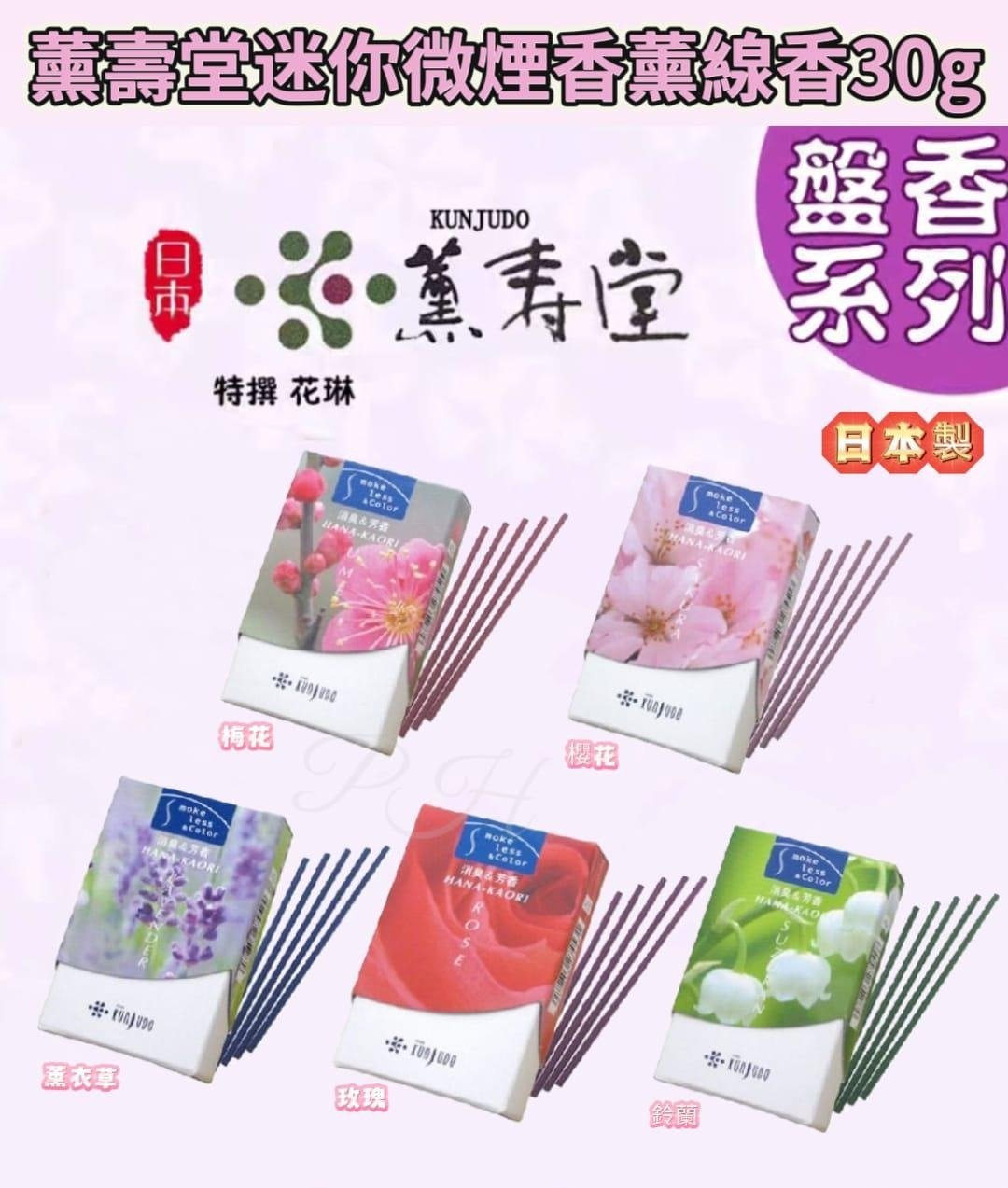 🇯🇵日本直送✈️ 🇯🇵日本百年老店「薰壽堂」歷史悠久超過1️⃣2️⃣0️⃣年,選用上好天然材料,通過精湛的現代製香工藝,打造出適合現代人生活品味的優雅線香。 🪔薰壽堂新推出"微煙"特性的香品,該技術令香品的香霧生成量縮減至普通線香產品的"1/4"有餘。 🪻除了温和、清爽、甜美的花香,還含天然除臭成分配方,具有除臭效果的香薰,是廣受喜歡的系列。 ✨5種日式氛圍選擇✨ A·梅花 B.櫻花 C.薰衣草 D.玫瑰 E.鈴蘭 ▪️燃燒時間:約10分鐘/1支 ▪️尺寸: 約7.3cm ▪️重量: 47g ▪️內容量: 30g(約130支) ▪️產地:日本
