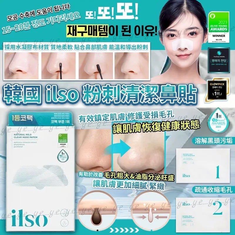 😖還在為黑頭、粉刺卡在鼻頭上煩惱嗎? 還在煩惱因使用撕除式鼻貼造成的毛孔坑洞嗎? 連續三年排行第一🥇 來自韓國專業品牌 ILSO的粉刺清潔鼻貼 讓你在家輕鬆拔除深層粉刺,還原細緻淨亮毛孔😇! 緊密貼合鼻翼設計,清潔更全面、不留死角👍 🔹使用方法: STEP1:洗臉擦乾後貼上鼻貼,約10~15分鐘取下,使用棉花棒將浮出粉刺清除,使用溫水輕柔擦拭 STEP2:按照去除的部位貼好15~20分鐘後去除 -規格: STEP01:3g(0.10oz) x 5片 STEP02:4g(0.14oz) x 5片 擠壓棉籤 x 10個 -產地:韓國 -保存方式:避免陽光直射,請置於陰涼乾燥。 -注意事項: ※請確保將產品放在孩童和寵物接觸不到的地方。 ※使用後如有不適,請暫停使用並諮詢專業醫師。 ※如不小心噴到眼睛,請用清水沖洗10-15分鐘後,請立即就醫諮詢專業醫師。