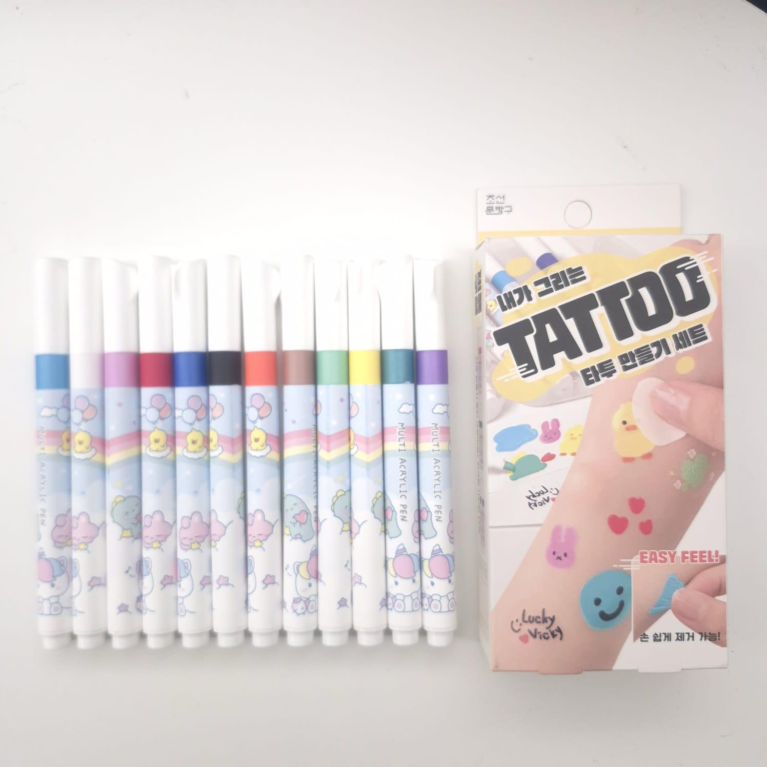🌈大人細路都岩🇰🇷自製DIY紋身套裝🎨 ˗ˏˋ♡ˎˊ˗ 近期IG熱爆🔥 親子魔法創意小神器! ✅ 防水防汗 ,岩哂開Party、睇演唱會應援用🍾🎤🥁🎸 🟡一盒套裝包括12色筆🎨+印水紙6張(139x71mm) ❤️超簡單畫低你鐘意既圖案, 按住圖案剪出,印出黎效果都幾靚, 立即自己繪畫獨一無二小清新紋身設返, 繼續可以Keep 住創作繪畫Cuteeeee 圖案 🎨 近日IG🔥瘋傳,只需親民價💰趕快入手啦!