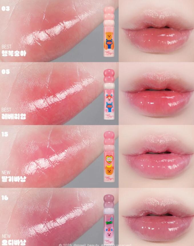 像是為雙唇注入一勺牛奶,質地柔滑、色調溫柔帶點朦朧感~ 經典色+新色同步登場,每支都想收編! 🟡4款選擇: -03 幸福蜜桃:透嫩顯白的暖調蜜桃奶色 -05 莓好升起:冷調莓果色,一抹瞬間提亮膚色 -15 草莓奶霜:不挑冷暖調的活力草莓粉 -16 桑果奶霜:融入莫紫調的柔和桑椹奶色 這次更搭配「Wiggle Wiggle 鍵帽鑰匙圈」限定贈品, 隨機送出 4 款中的 1 款,收集控絕對要手刀衝刺⋯⋯🤍 💡 使用小技巧: 輕塗全唇後,在唇中央疊加 2 層, 立刻擁有彈潤透光的糖葫蘆玻璃唇效果! 🥰同色輕輕拍在臉頰,還能當作自然腮紅, 一物兩用,打造軟萌唇頰妝~