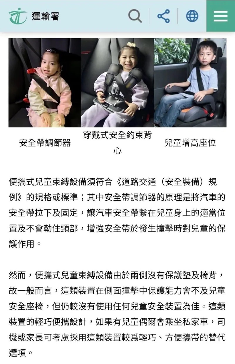 💥2025年11月香港新法例開始實施:兒童乘坐私家車時須使用兒童束縛設備!點算好? 😩 搭私家車下下要搬個傳統 Car Seat😭 日本直送🇯🇵 Smart Kid Belt 便攜式兒童安全帶調節器幫到你👏🏼,呢款兒童專用安全帶調節器係由波蘭開發同埋出產信心保證🏆,有咗佢就唔需要購買昂貴嘅兒童座椅🥳 仲有個收納套送埋隨時帶定出街用🚗,搭 Uber 都唔使驚俾人拒載🫢 ✅符合國際標準及日本安全標準 ✅通過香港政府認證 ✅已取得E標誌 ✅通過歐洲和美國嚴格的Crash測試 ✅取得世界唯一安全認證的口袋大小的兒童安全認證 ✅重量僅約 120g,方便攜帶 ✅適用體重:15~36kg ✅參考年齡:3~12歲 ✅波蘭製造 💥由2025年11月1日起,8歲以下兒童除非身高達1.35米,否則不論坐在私家車前排或後排座位,均須使用兒童束縛設備;8歲或以上兒童或身高至少1.35米的乘客,則須使用兒童束縛設備或佩戴成人安全帶,否則司機不得在任何道路上駕駛私家車。 相關產品